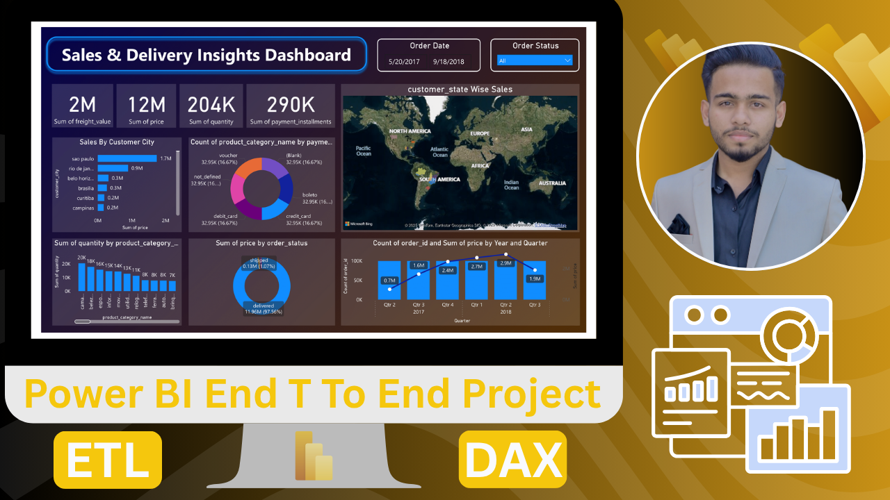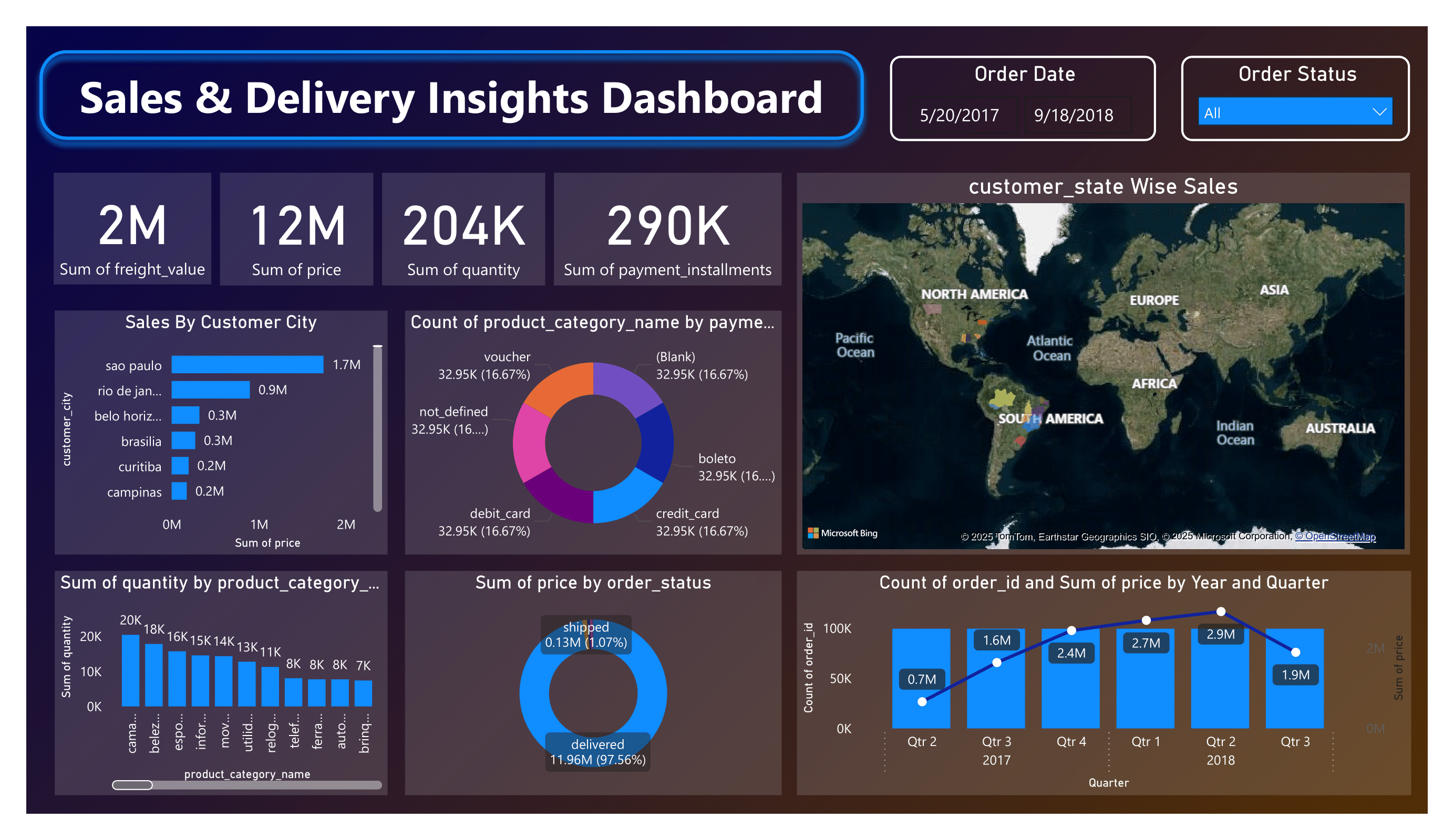 I successfully designed and developed a Sales & Delivery Insights Dashboard in Power BI, completed over a period of 3–6 months, to provide clear visibility into business performance, delivery operations, and revenue trends. The dashboard transforms raw sales and delivery data into actionable, real-time insights that help management make data-driven decisions.